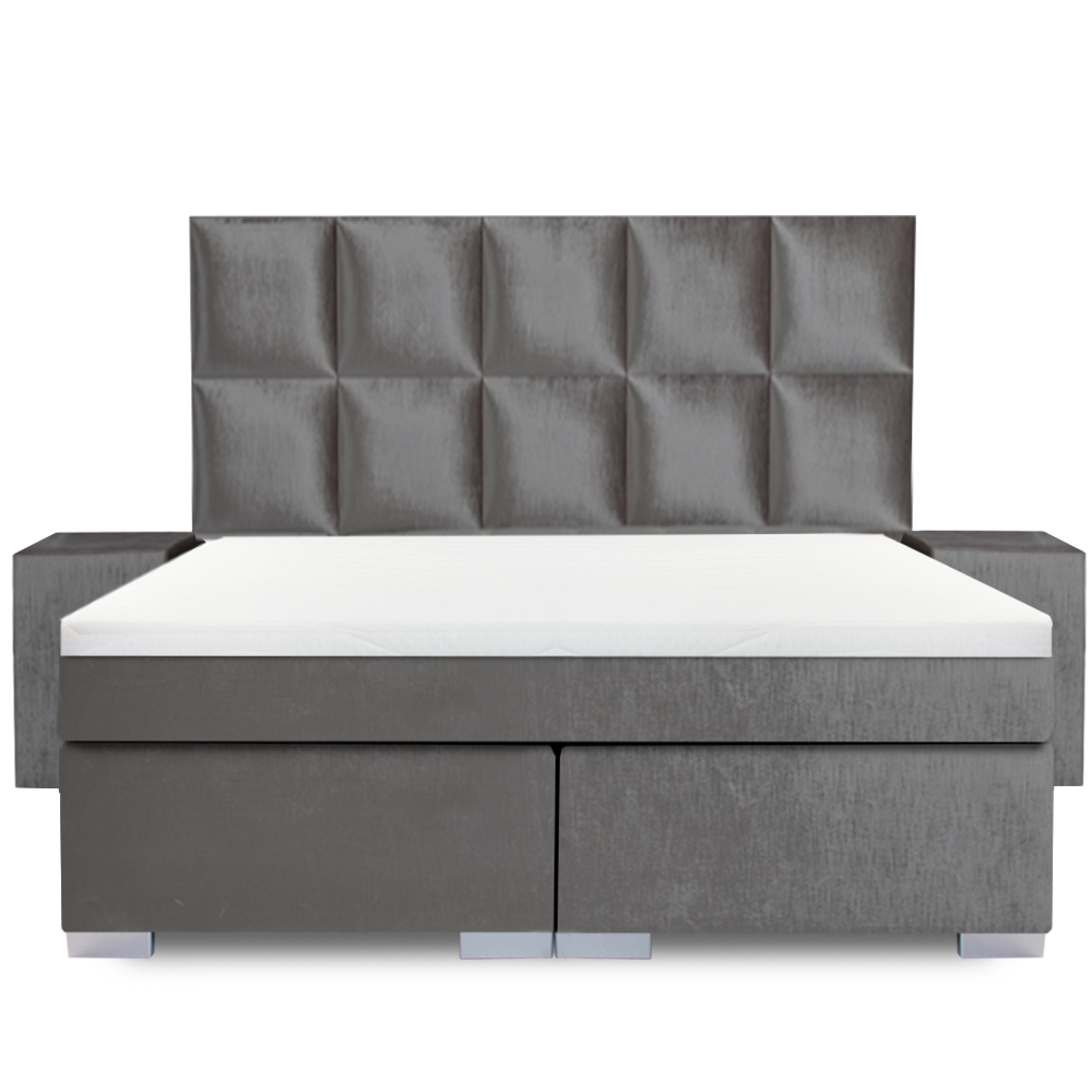 De boxspring kenmerkt zich door een hoofdbord voorzien van 10 vlakken geïnspireerd vanuit de Eric Kuster Stijl. Het hoofdbord is 140 cm hoog en is even breed als het bed. In combinatie met de velvet stof geef je de BIG Mondriaan een moderne en trendy uitstraling in de slaapkamer. Binnen onze webshop heb je de keuze uit een standaard aantal kleuren. Heb je niet de juiste kleur gevonden? Kom dan langs bij ons in de winkel, want we hebben nog veel andere kleuren!