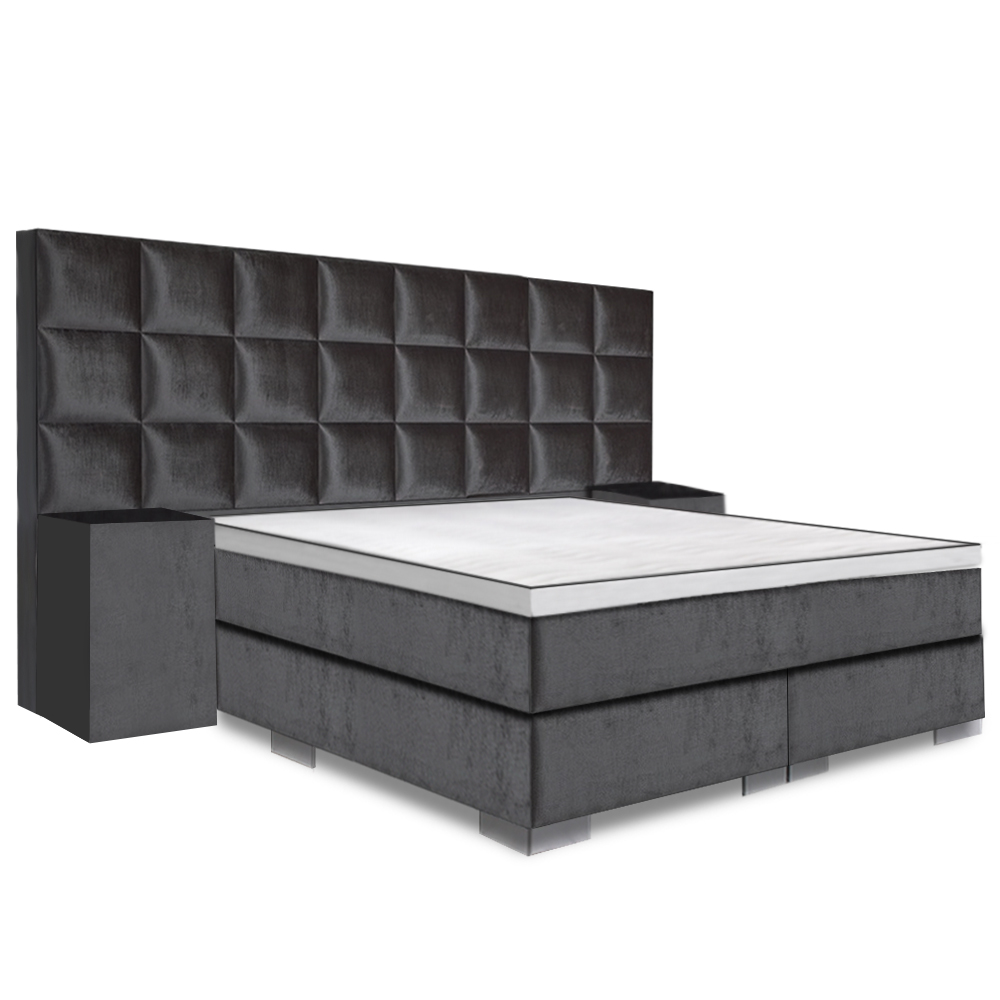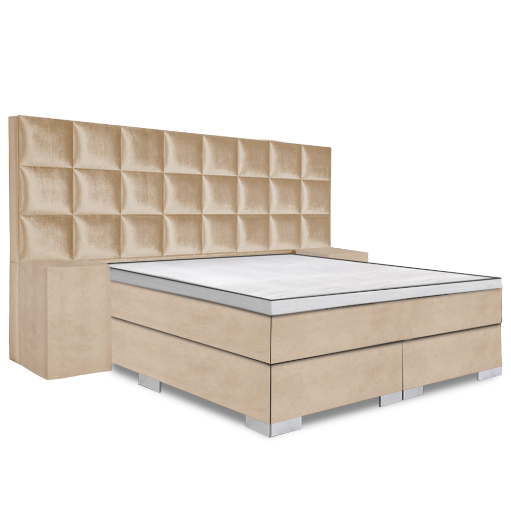 Een mooi groot hoofdbord, luxe velvet stof en fantastisch slaapcomfort, de Boxspring Mondriaan Royaal heeft het allemaal! Wil je echt indruk maken in de slaapkamer, ga dan voor een boxspring met een groot hoofdbord. De Boxspring Mondriaan Royaal heeft een hoofdbord voorzien van blokken. Mocht dit niet jouw droom hoofdbord zijn, bekijk dan het hele assortiment Royaal boxsprings.