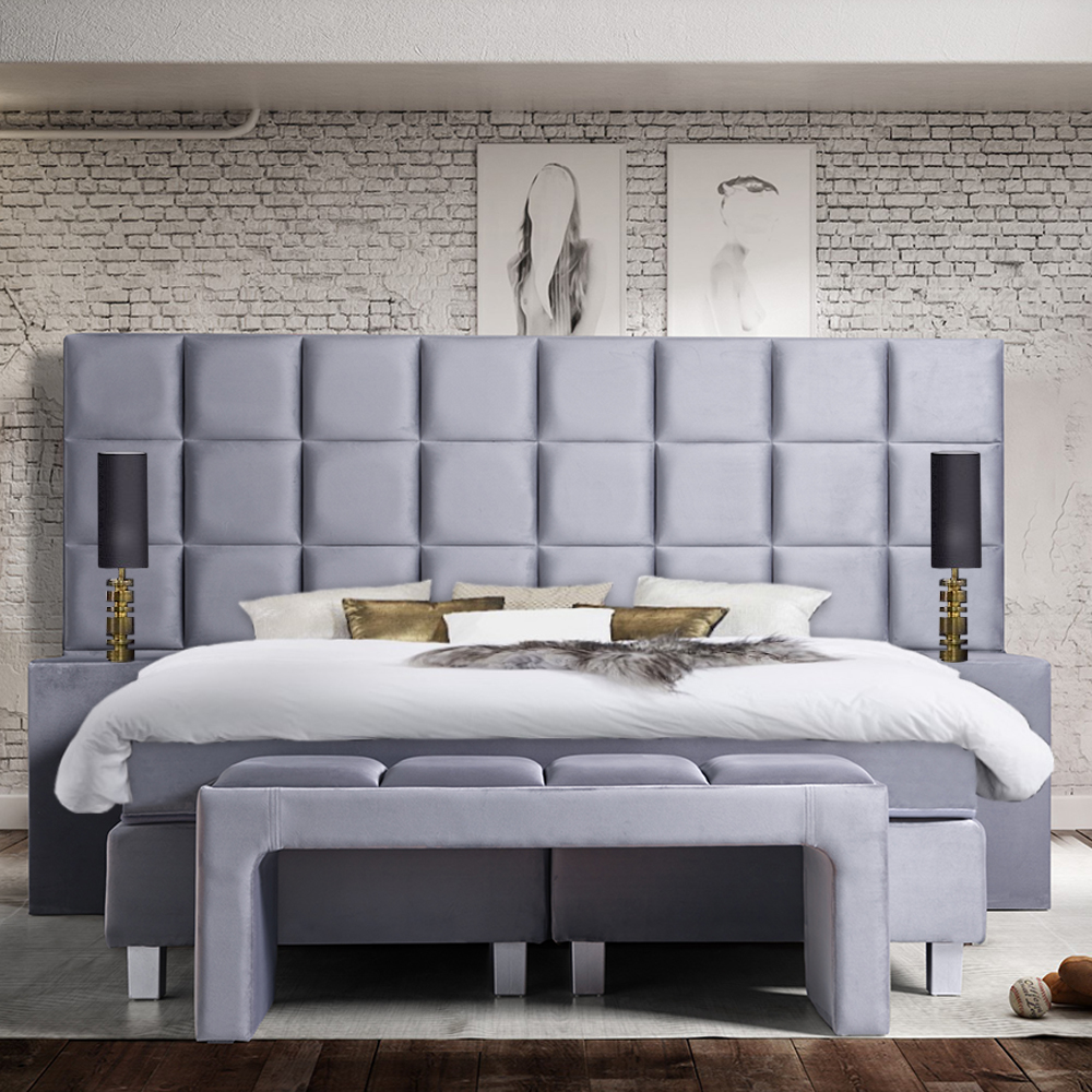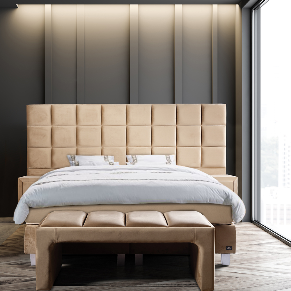 Ein wunderschönes großes Kopfteil, luxuriöser Samtstoff und fantastischer Schlafkomfort: das Boxspringbett Mondriaan Royal hat alles! Wenn Sie im Schlafzimmer wirklich Eindruck machen wollen, entscheiden Sie sich für ein Boxspringbett mit großem Kopfteil. Das Boxspringbett Mondriaan Royal hat ein Kopfteil mit Blöcken. Wenn dies nicht Ihr Traumkopfteil ist, sehen Sie sich das gesamte Sortiment an Royal-Boxspringbetten an.