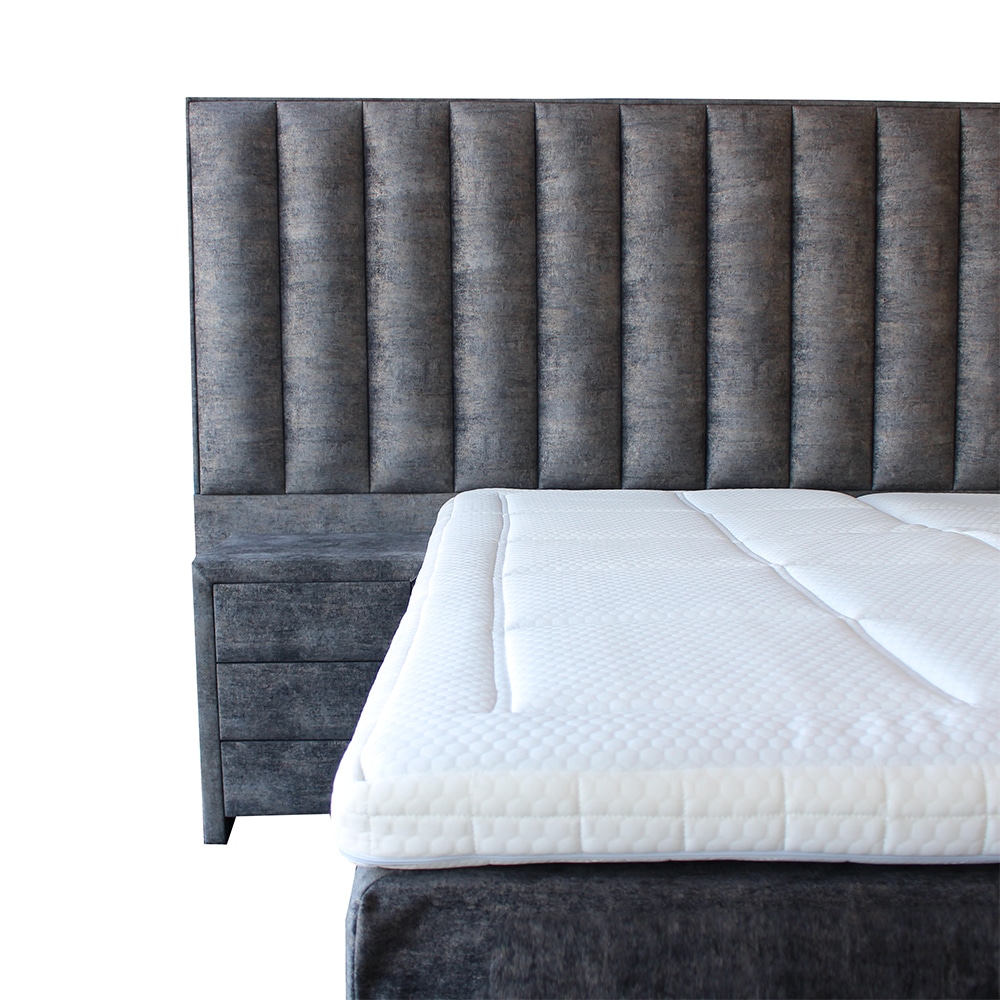 De Boxspring Vertigo heeft een modern en groot hoofdbord van maar liefst 160cm hoog en het hoofdbord steekt aan beide zijden 45cm uit.